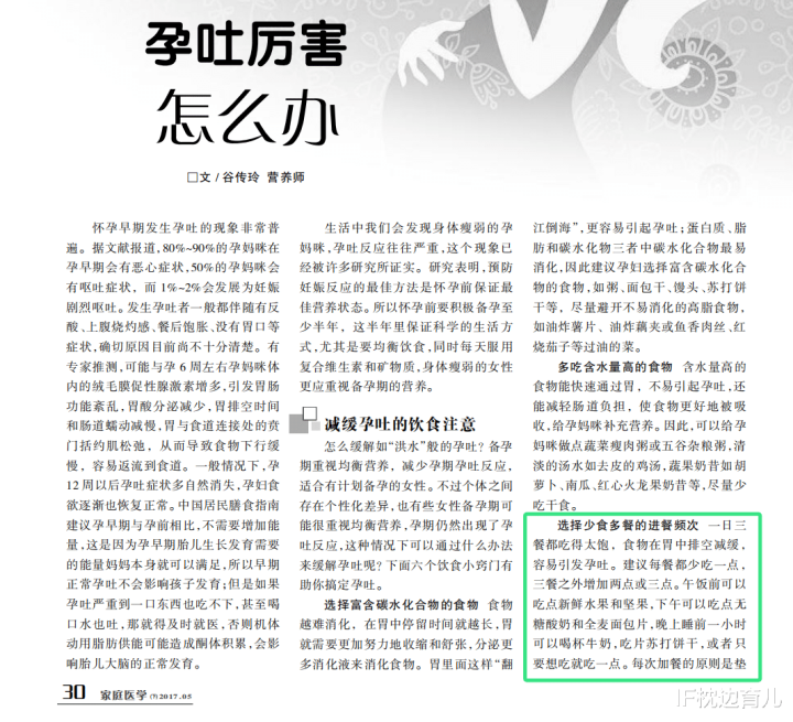 还有的是前三、四个月吐,之后就好了。比较难搞的是,有的孕妈一直吐到生,太遭罪了!